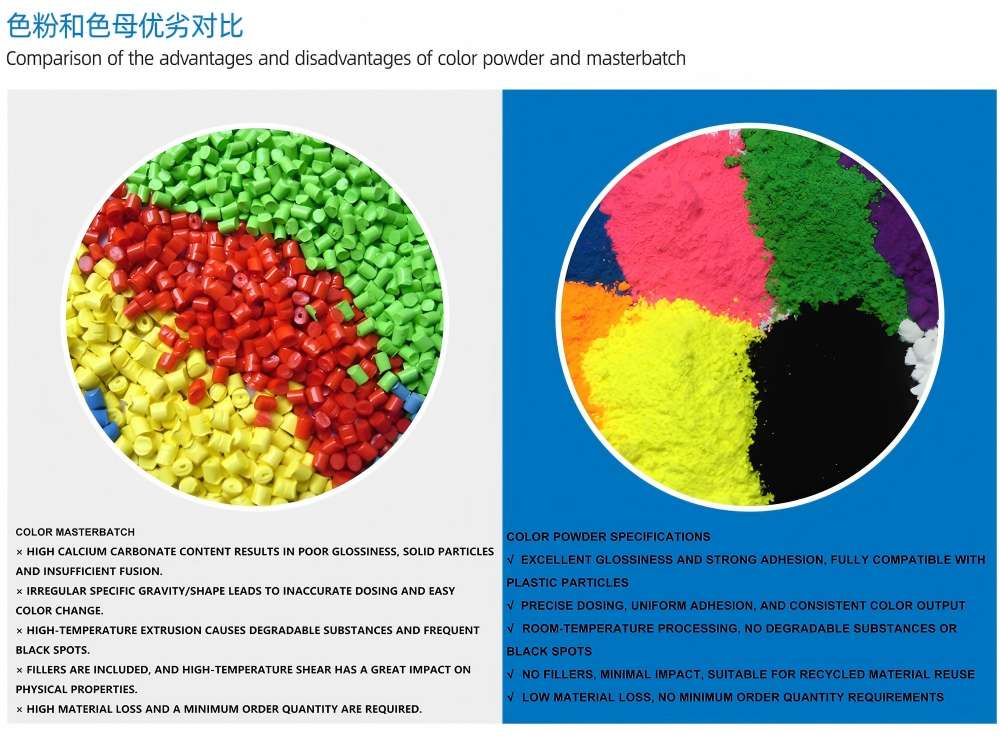 1. Модуларен дизајн: Овозможува брза промена на бојата за 5 минути; може да се полни со дополнителни материјали; Компатибилен и со пигмент и со мастер серија, што овозможува повеќенаменска употреба во една машина.